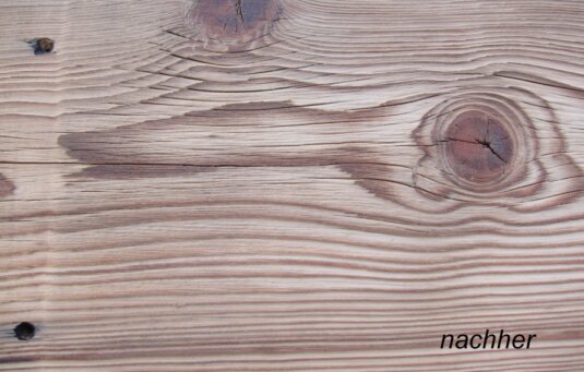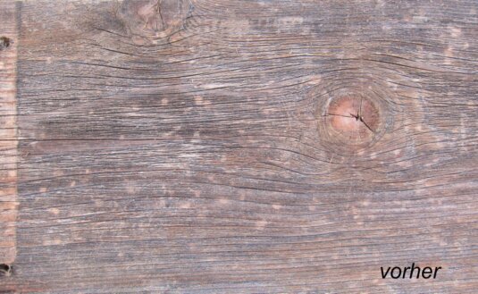 Das Holz, welches ich verarbeite, stammt bis auf wenige Ausnahmen aus dem hiesigen Einzugsgebiet, also rund um Schwangau.Hierbei handelt es sich zumeist um Fichte, die hier in den Gebirgswäldern geschlagen wurde.Da aufgrund der klimatischen Verhältnisse das Holz hier langsamer wächst, ist das Altholz mehr als hundert Jahre alt.Grundsätzlich frage ich die Besitzer nach Alter des abgebrochenen Gebäudes und erfahre zumeist auch die geschichtlichen Hintergründe.Zum einen suche ich die Besitzer auf, deren Objekte abgebrochen wurden bzw. kurz vor dem Abbruch stehen, andererseits erhalte ich von Freunden und Bekannten wertvolle Hinweise, wo und bei wem Altholz angekauft werden kann.Ja - "angekauft"....denn zwischenzeitlich wird Altholz nicht mehr verschenkt - auch im Allgäu verlangt man je nach Alter, Beschaffenheit und Güte entsprechend viel Geld (schauen Sie mal im örtlichen Baumarkt nach Altholz und wie hoch da die Preise sind).Ausnahmslos achte ich darauf, dass das Holz weder mit Holzschutz-Lasuren, Lacken oder anderen Chemikalien behandelt wurde, die im letzten Jahrhundert eingesetzt wurden.Gerade in Räumen mit Temperaturschwankungen kann ein mit solchen Mitteln eingelassenes Brett ausdünsten/schwitzen und ggf. zu gesundheitlichen Reaktionen (Brennen der Augen, Atemluft, Hautjucken ja sogar Überkeit usw.) führen.Holz aus Brand-Ruinen verarbeite ich grundsätzlich nicht, da dieses oftmals mit gefährlichen und teils giftigen Rauchgasen kontaminiert ist.Je nach aktuellem Zustand werden die Bretter u. Balken entsprechend lange (bis zu einem Jahr) getrocknet.Dies geschieht ausschließlich in überdachten oder umschlossenen Räumen, wo es vor Witterungseinflüssen geschützt lagert.Zeigt mir mein Feuchtmessgerät an, dass ein Brett trocken ist, wird es separat gelagert und geht dann anschließend in die Verarbeitung.Anhand der unten gezeigten Fotos können Sie sehen, wie aus der unansehnlichen Außenwandverkleidung eines alten Bauernhofs eine traumhaft schöne Maßerung hervor tritt.